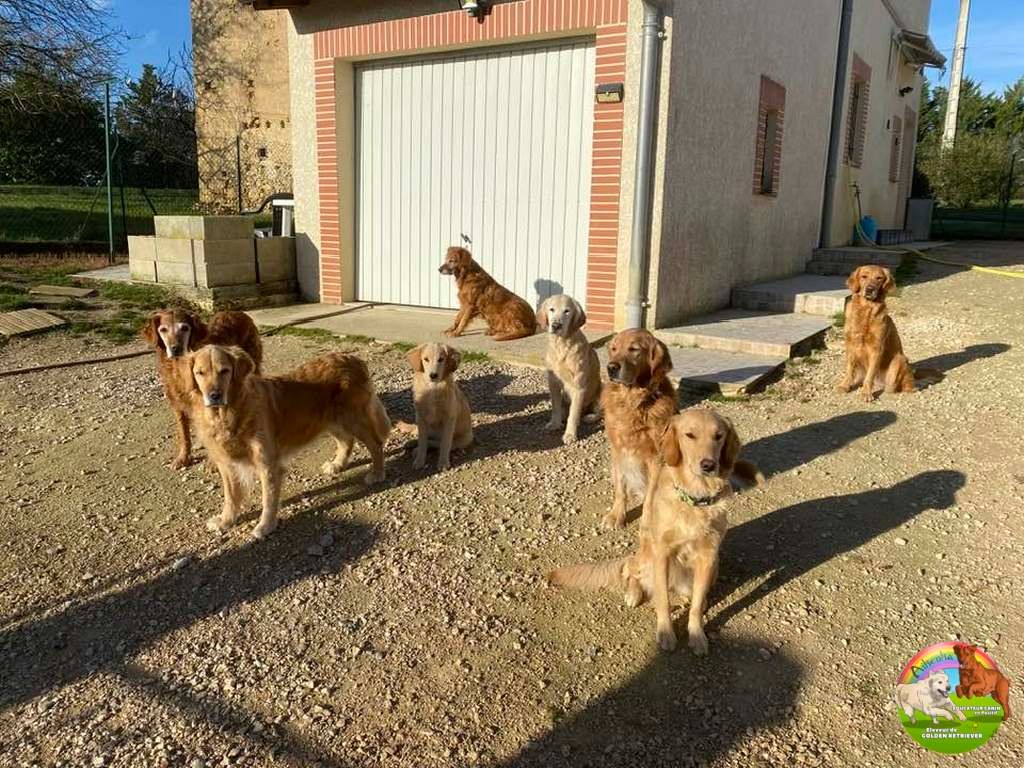 Petit élevage familial en maison, avec mes 7 Goldens, dont 4 retraités d'élevage et mon chat