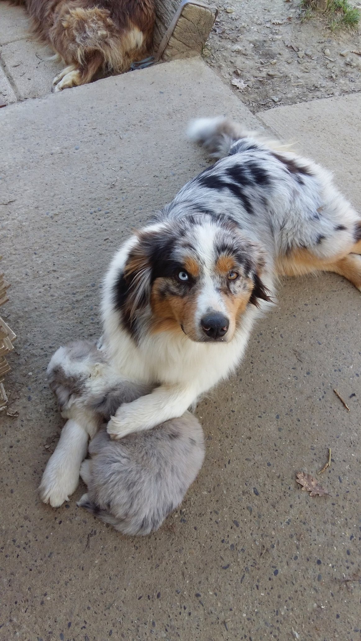 Elevage passion depuis 1998 où j'ai eu ma première portée de leonberg, et depuis 2008 j'ai acquis ma première bergère australienne et ma première portée d'australien est née en 2013. Je suis membre des clubs de race. J'ai au maximum 3 portées dans l'année. Je garde mes femelles reproductrices même mes petites mamies qui restent à la maison jusqu'à la fin. J'ai actuellement 14 chiens à la maison de mamie Chouchou qui va sur ses 13 ans à la petite dernière Althéa qui a 5 mois.