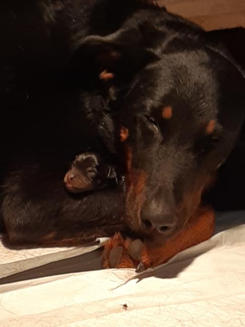 Je la remets à terre, sans aucunes plaintes et avec une volonté de fer, la petite s'est hissée jusqu'aux tétines afin de rejoindre les autres petits et tant bien que mal, elle a attrapé l'une d'entre elles...