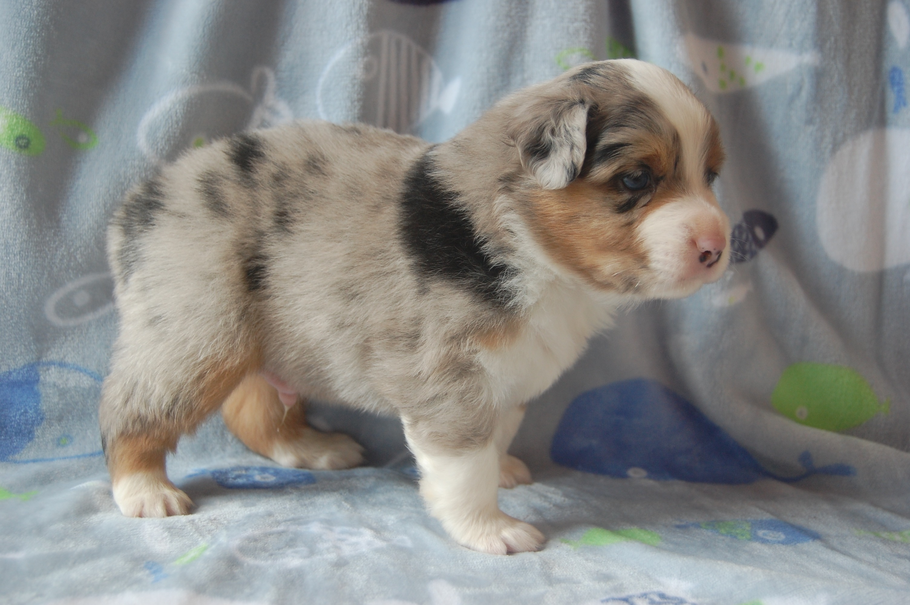 Découvrez mes portées de chiots disponibles bleu merles et noirs tricolores