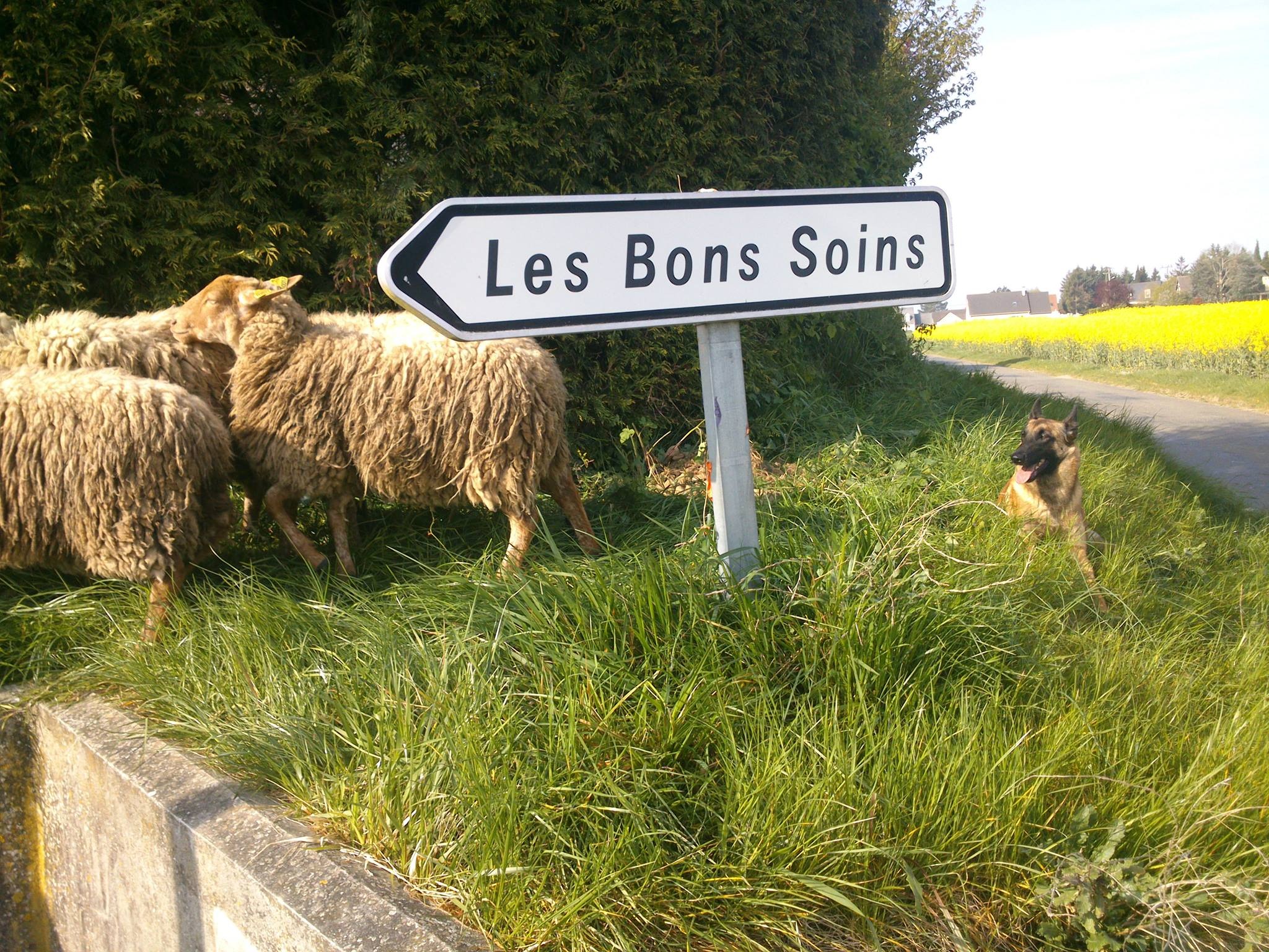 A la limite de la Normandie et de l'Ile de France, j'élève aussi des brebis et ma Bergerie est située dans un hameau qui porte le très vieux nom de "les Bons Soins" depuis le XIe siècle.Mon affixe fut vite trouvé!