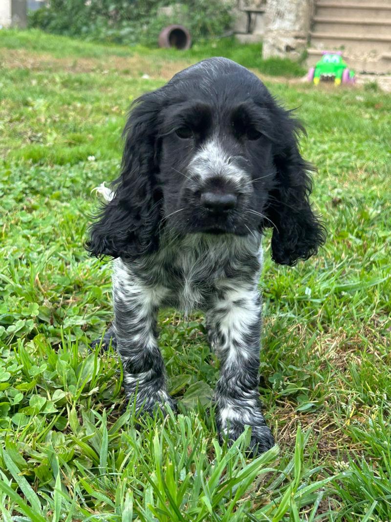 Le Cocker Spaniel Anglais est un chien de taille moyenne, robuste et élégant, connu pour son pelage soyeux et abondant. Son museau est carré et ses yeux sont ronds, de couleur noisette à marron foncé, dégageant une expression douce et intelligente. Les oreilles sont l'une de ses caractéristiques les plus distinctives : longues, larges et pendantes, elles sont couvertes de poils ondulés. La queue, généralement coupée, est portée joyeusement et en mouvement constant. Le pelage peut varier en couleurs, allant du noir uni, doré à des mélanges de plusieurs couleurs.